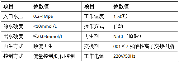 洗浴用軟化水設備性能參數(shù):