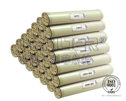 反滲透膜是元件為螺旋卷式結(jié)構(gòu),簡稱卷式結(jié)構(gòu)。該反滲透膜是由多葉膜袋組成,每一葉膜袋由兩片膜正面相背的膜片、置于兩片膜片間的產(chǎn)品水流道和放置在膜表面的湍流網(wǎng)格狀進(jìn)水流道組成,反滲透膜的膜袋三邊用膠粘劑密封,第四邊開口于有孔的產(chǎn)水收集管上。與其它元件結(jié)構(gòu),如管式、板式和中空纖維式相比,具有水流分布均勻、耐污染程度高、更換費用低、外部管路簡單、易于清洗維護(hù)保養(yǎng)和設(shè)計自由度大等許多優(yōu)點,成為目前主要膜元件結(jié)構(gòu)形式。