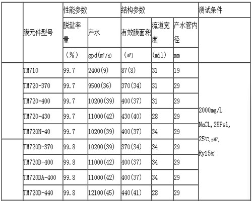 東麗低壓高脫鹽反滲透膜TM720系列性能規(guī)范: