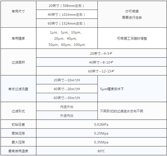 大流量濾芯性能參數(shù)